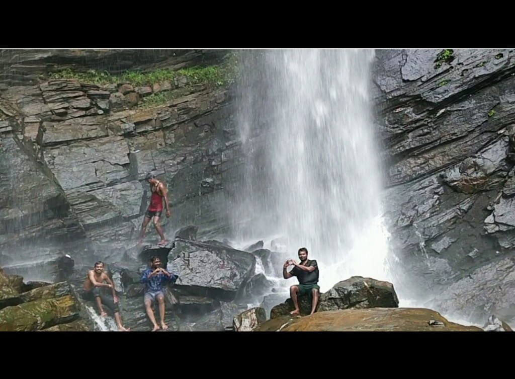 We went near to the falls, the falls was literally slow, u can directly stand under it and u can stay there without getting hurt. The mobile got wet so we didnt get any further closer shot.